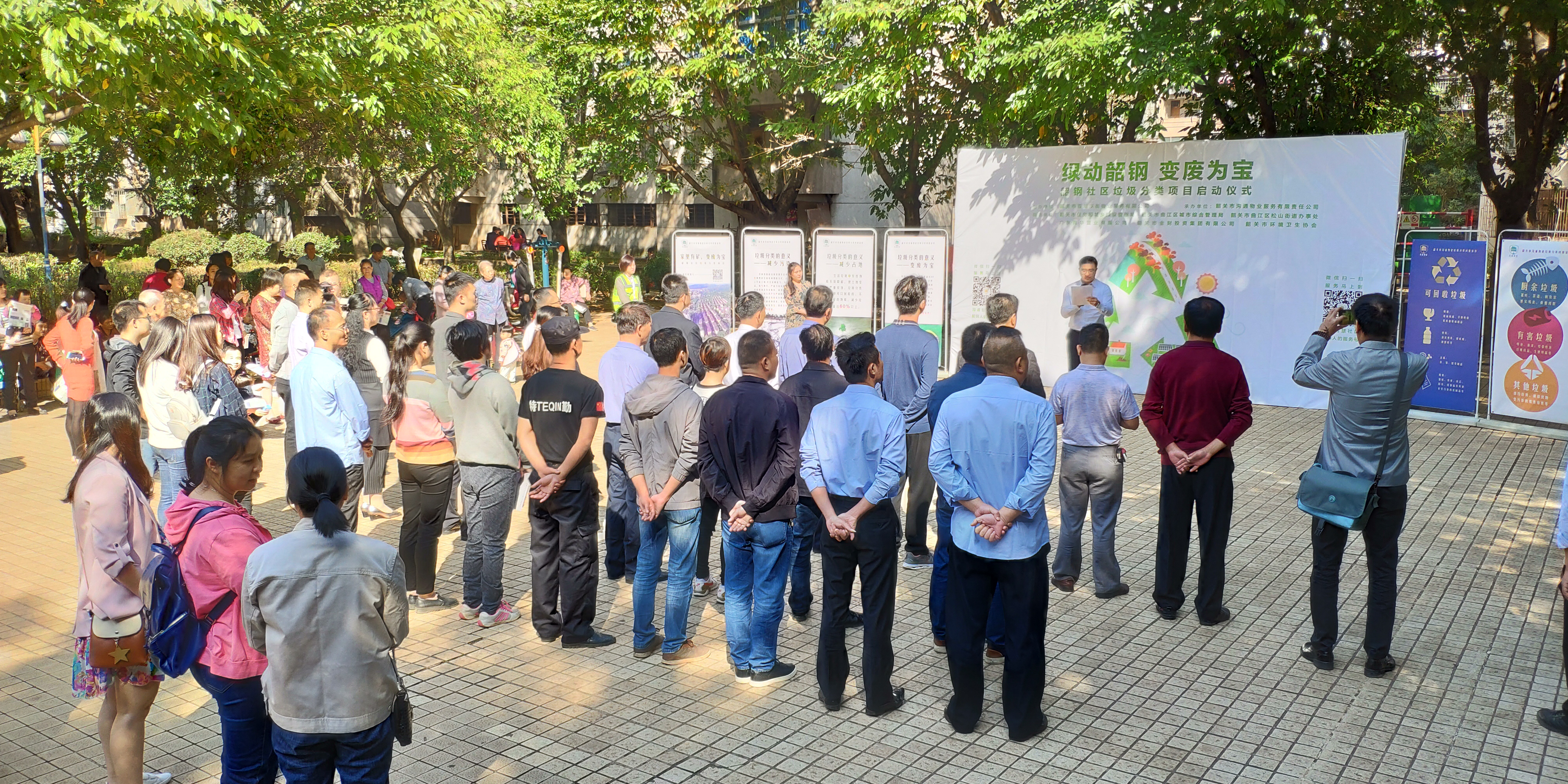 為加強社區(qū)垃圾分類宣傳和推廣,提高生活垃圾處置水平,實現(xiàn)生活垃圾減量化、資源化和無害化處理,營造優(yōu)美的生活、居住環(huán)境,10月28日,百年東街物業(yè)服務有限公司在韶鋼紅旗區(qū)健身公園舉行主題為“綠動韶鋼·變廢為寶”垃圾分類項目啟動儀式。金投集團、東街物業(yè)公司、溝通物業(yè)公司負責人以及韶關市、曲江區(qū)、松山街道辦事處等有關領導,東街物業(yè)公司韶鋼項目工作人員和社區(qū)居民代表共30余人參加了活動。