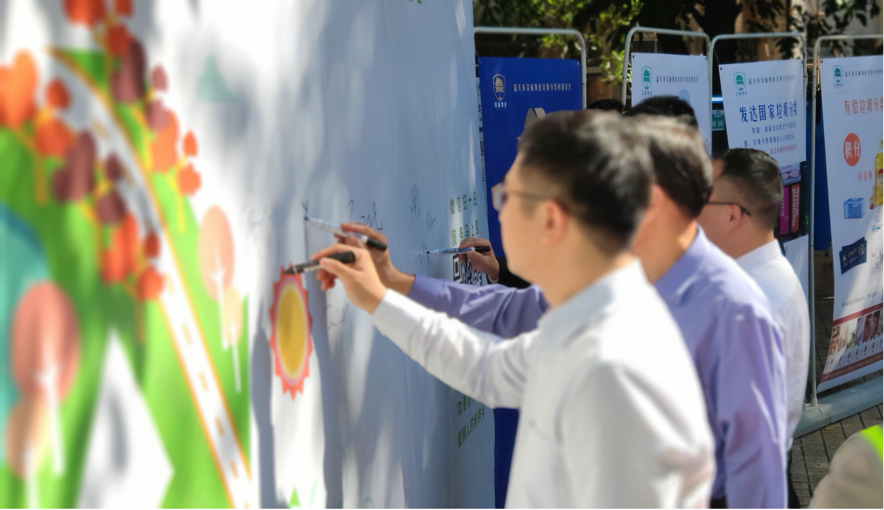 啟動儀式上,出席活動的領導共同為“智能垃圾回收房”啟動揭幕,并在活動簽名墻上簽下自己的名字,表明了自覺遵守垃圾分類的決心和承諾。