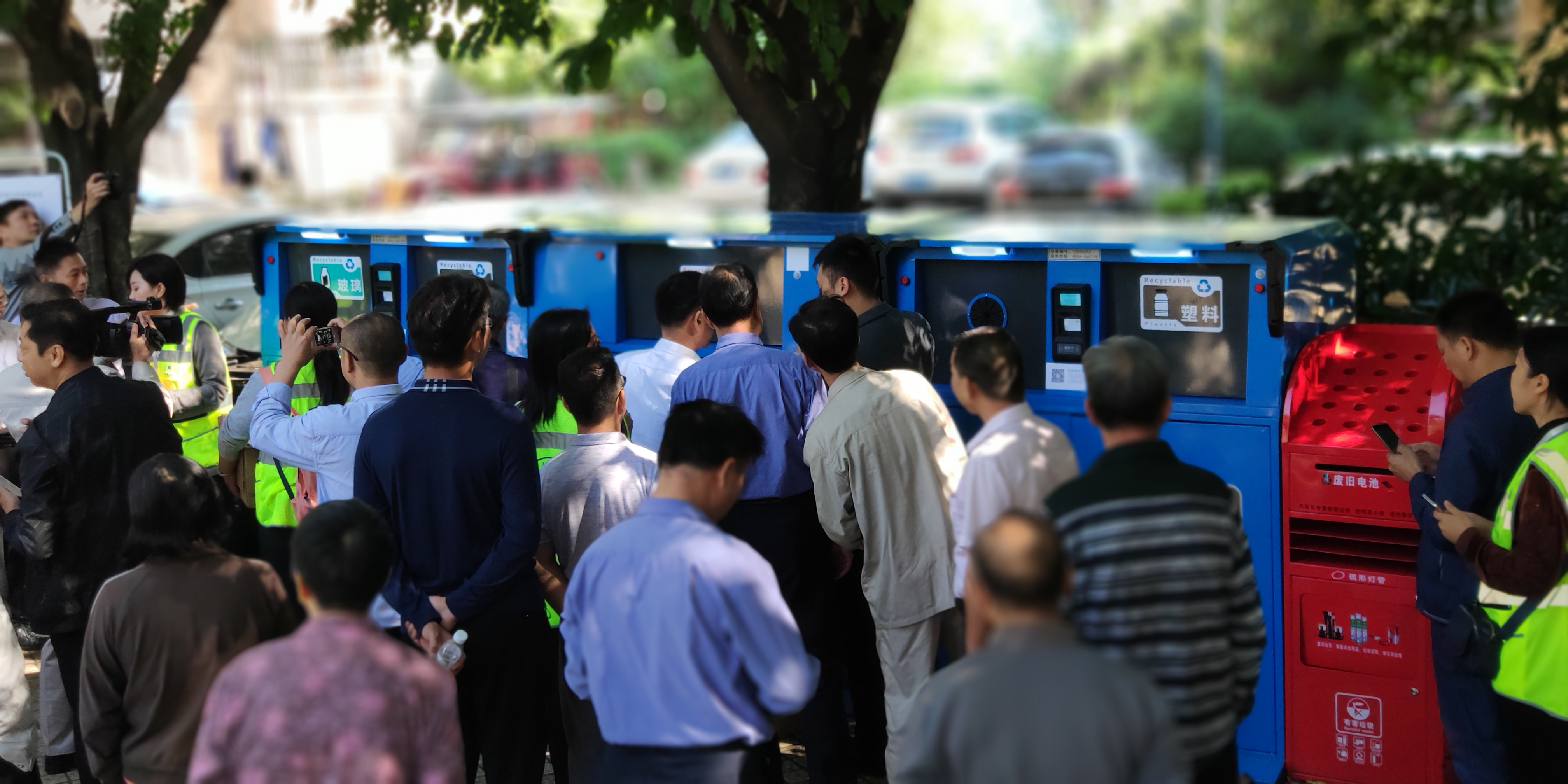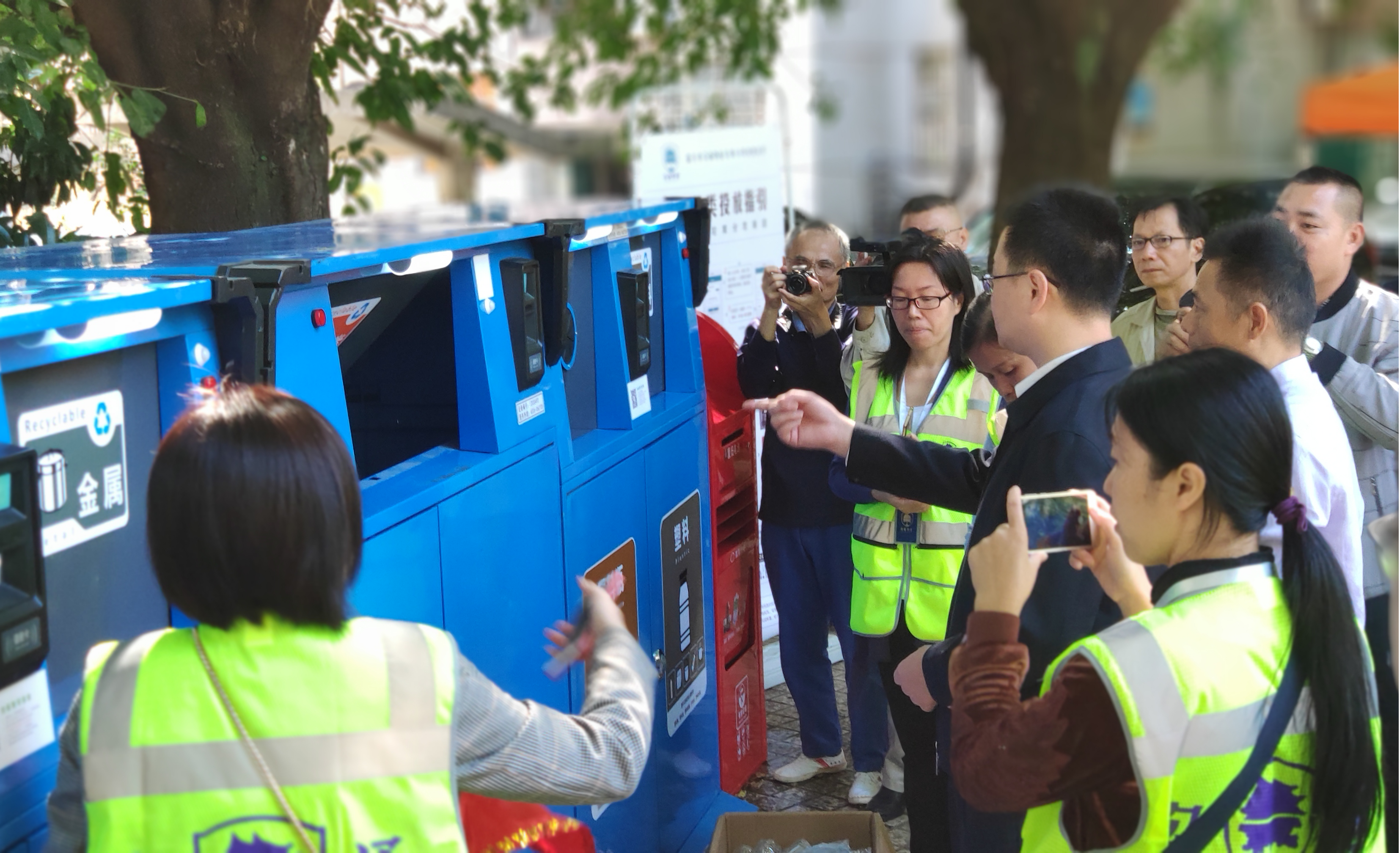 現(xiàn)場領導、嘉賓、居民興致勃勃參觀了“智能垃圾回收房”,了解其使用方法,掌握如何獲取積分獎勵(現(xiàn)金余額),兌換生活用品。現(xiàn)場工作人員熱情為居民示范手機注冊、刷卡、垃圾分類投放等操作步驟。