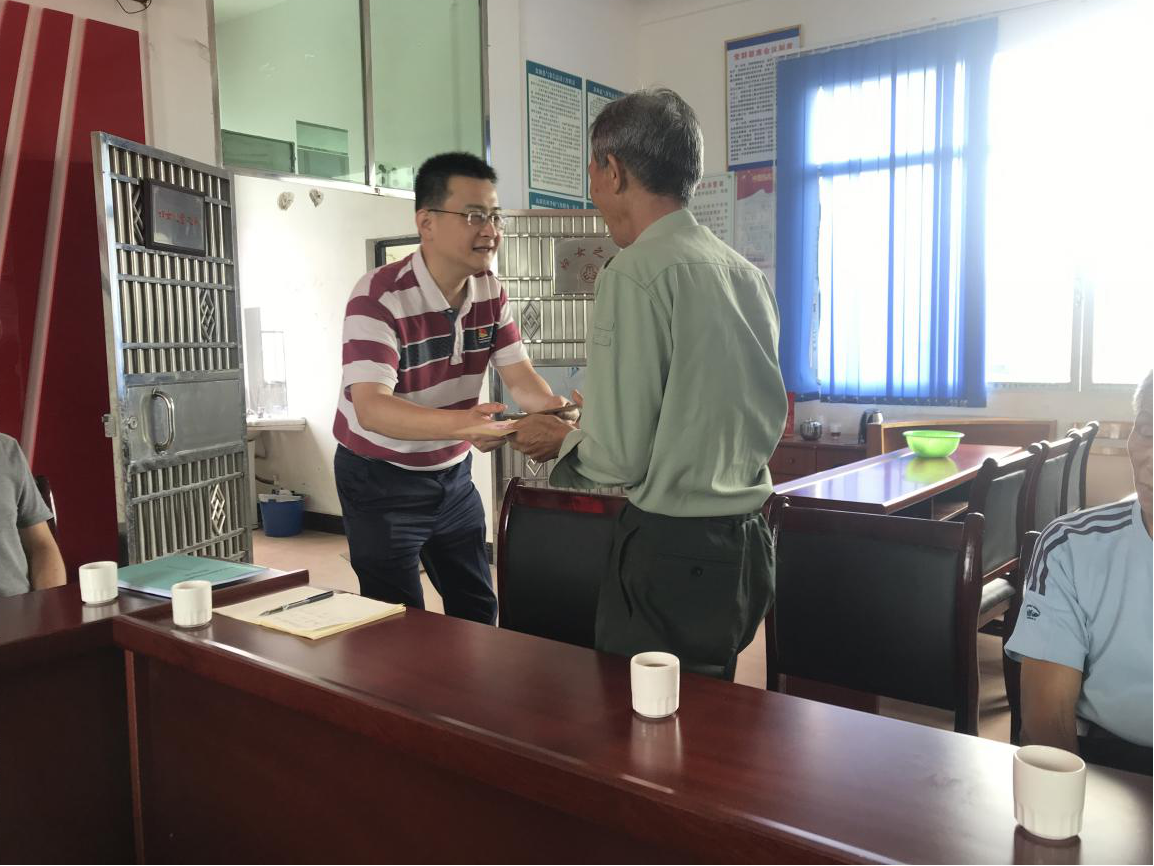 在公司領(lǐng)導(dǎo)的帶領(lǐng)下一行冒著酷暑來到駐村扶貧工作點(diǎn)——周陂鎮(zhèn)陽西村開展“七一”節(jié)前慰問貧困老黨員的關(guān)愛行動,同時與九名困難老黨員進(jìn)行了面對面交談,陽西村委領(lǐng)導(dǎo)班子、扶貧工作隊(duì)成員及公司前駐村第一書記劉志軍同志一同出席了座談會。