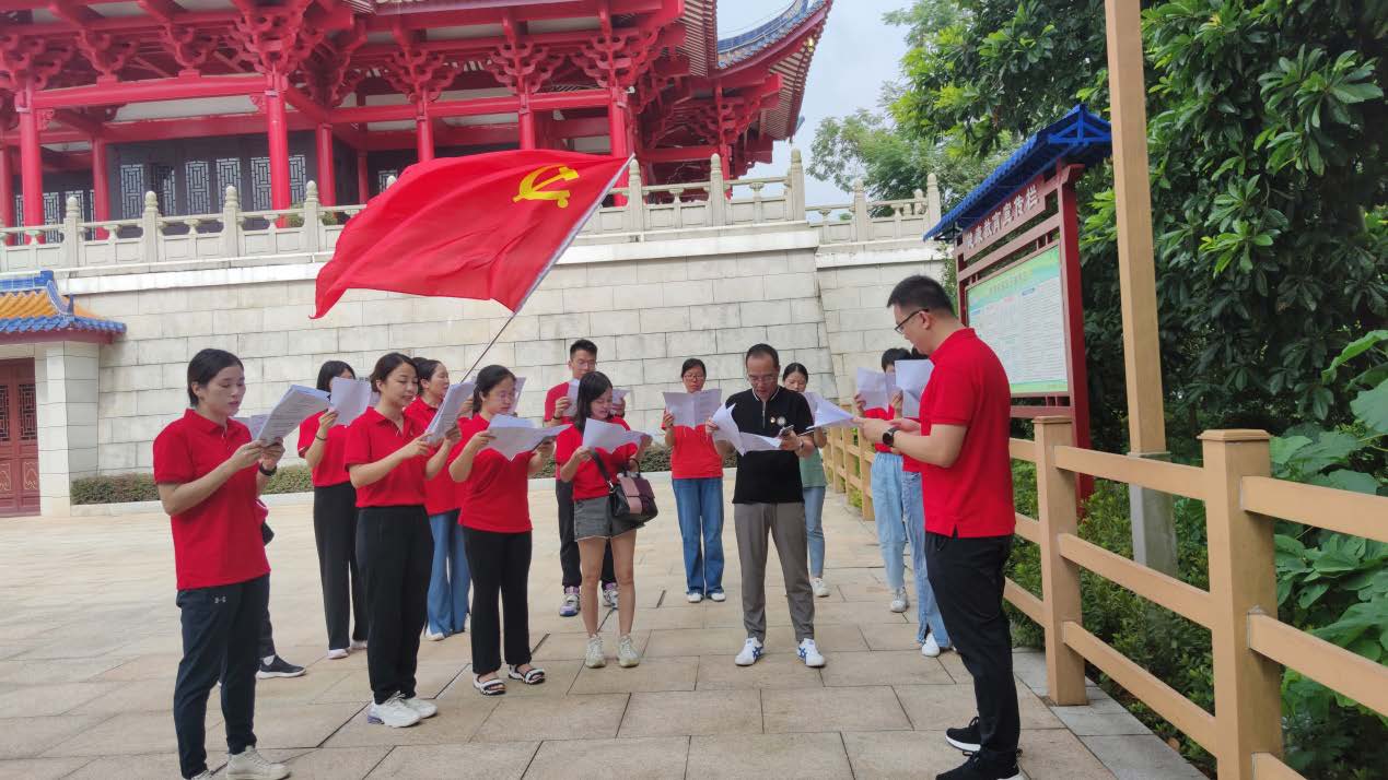 到達蓮花山頂峰,清風徐來,令人神清氣爽、心曠神怡,登臨韶陽樓,面對黨旗全體黨員重溫入黨誓詞,誓言錚錚、聲聲震耳,再憶入黨初心,并通過誦讀紅色詩歌、高唱愛國歌曲,抄寫紅色家書等形式,讓在場黨員、發(fā)展對象和入黨積極分子重新學習感悟革命前輩不忘初心、堅韌不拔、勇往直前的大無畏革命精神,從而進一步堅定理想信念,傳承和發(fā)揚黨的光榮傳統(tǒng)、優(yōu)良作風。期間大家結(jié)合自身工作崗位,圍繞公司生產(chǎn)經(jīng)營和改革發(fā)展等方面,進行了深入的交流討論。