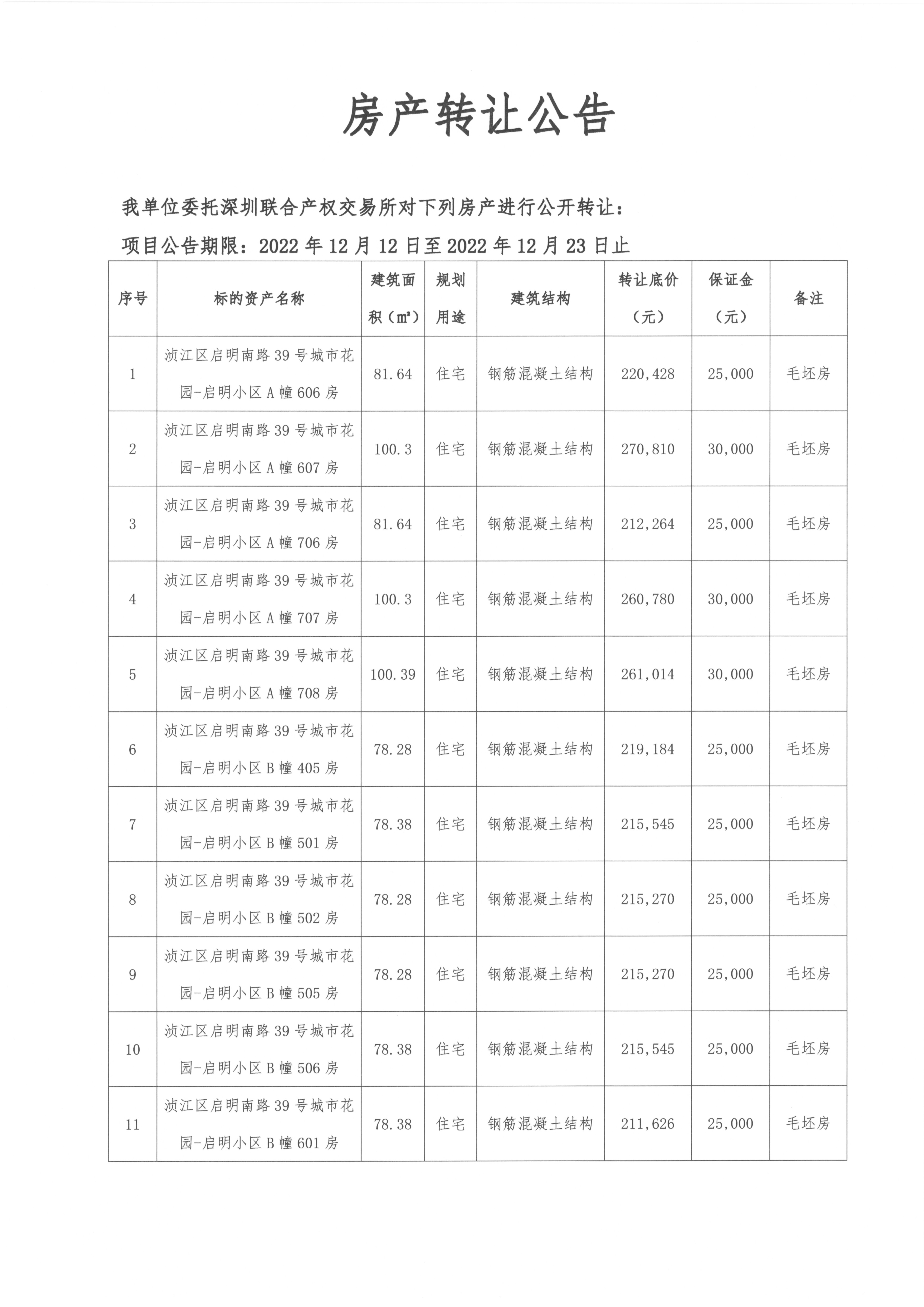 房產(chǎn)轉(zhuǎn)讓公告(啟明小區(qū))