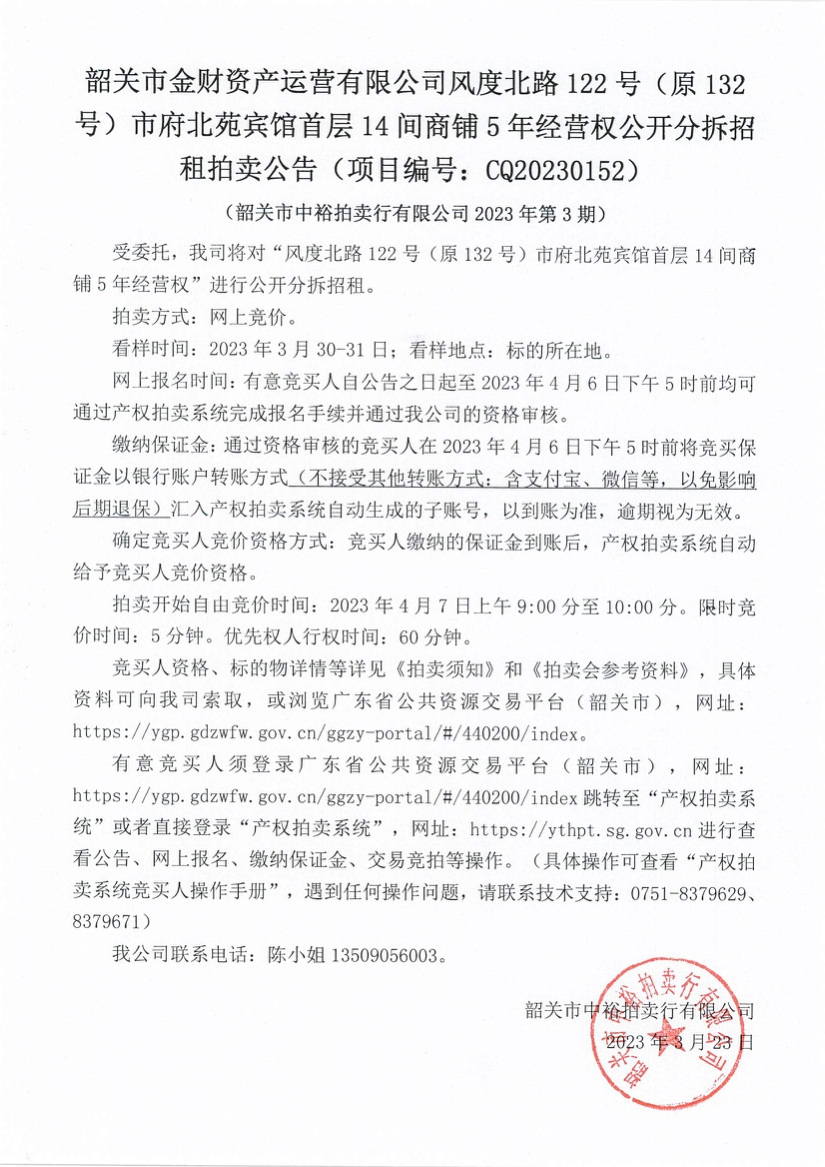 附件1.韶關市中裕拍賣行有限公司2023年第3期拍賣會參考資料http://m.geneticallymodifiedgames.com/uploadfile/2023/0323/20230323072728718.pdf 附件2.韶關市中裕拍賣行有限公司拍賣須知 http://m.geneticallymodifiedgames.com/uploadfile/2023/0323/20230323072747124.pdf 附件3.交易申請表 http://m.geneticallymodifiedgames.com/uploadfile/2023/0323/20230323072813131.pdf |